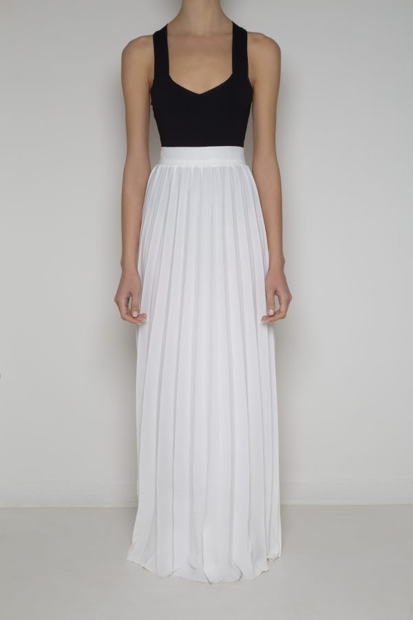 We dreamed about this pleated skirt for so long – and now it’s finally here! We designed the pleats ourselves and added a back zipper to perfectly flatter the waist and hips. We want to wear it with all our bodysuits, from morning to night, from spring to the first chilly days of winter. We are obsessed!